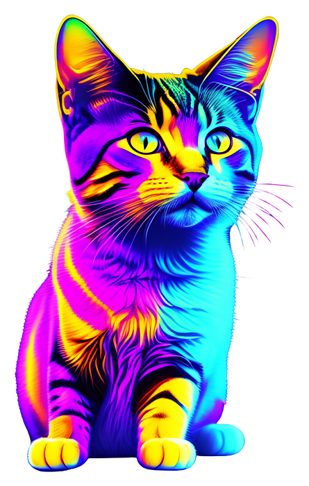 Bring a burst of joy and magic into your life with this colorful Rainbow Kitten. With its whimsical and playful charm, it is sure to add a unique touch to any setting. Whether you're a cat lover or simply appreciate the beauty of rainbows, this design is perfect for those who love all things fun and vibrant. Let this design fill your heart with love and embrace the captivating world of cats.