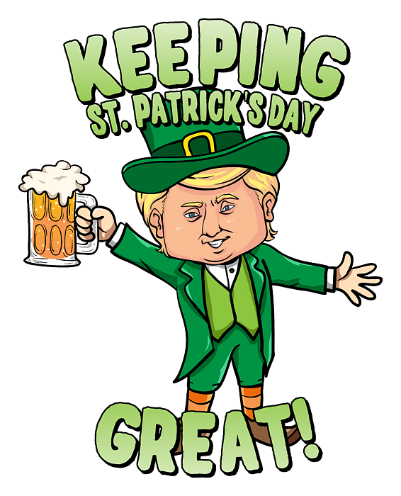 Looking for a fun and festive way to celebrate St. Patrick's Day? Look no further than our Donald Trump Keeping St. Patrick's Day Great design! With a nod to Irish culture and a playful twist on the president's persona, this design is perfect for anyone looking to show their love for all things Irish. Whether you're hitting the pub for a pint of Guinness or just enjoying a cold one at home, this design is sure to bring a smile to your face and help you get into the holiday spirit. So why wait? Order your Donald Trump Keeping St. Patrick's Day Great design today and get ready to party like the Irish!