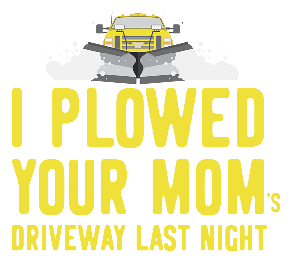 Show off your cheeky side with our "I Plowed Your Mom's Driveway Last Night" design! Tailored for the plow truck drivers with a sense of humor, this phrase is a playful nod to the hard work they put in during those snowy nights. Whether you're behind the wheel clearing roads or sharing a laugh with fellow drivers, this design is sure to break the ice and get some chuckles!