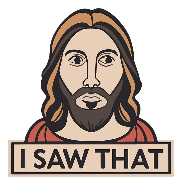 Marrying divine oversight with modern internet culture, this design adds a humorous spin to the omnipresence of Jesus in the age of memes. It's perfect for those with a playful sense of spirituality and a love for internet humor.