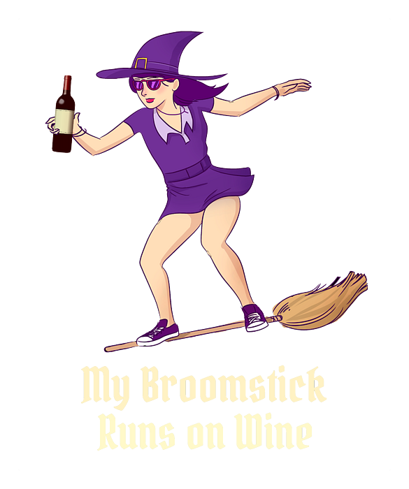 Looking for a fun and unique Halloween-themed item? Check out this design featuring a witch and her trusty broomstick, powered by none other than wine! With a humorous and playful tone, this design is perfect for wine-drinking and witch-loving enthusiasts alike. Whether you're searching for a Halloween costume or home decor, this design is sure to delight and add a touch of witchy charm to any occasion. So why not add a little wine-fueled magic to your life this Halloween season?