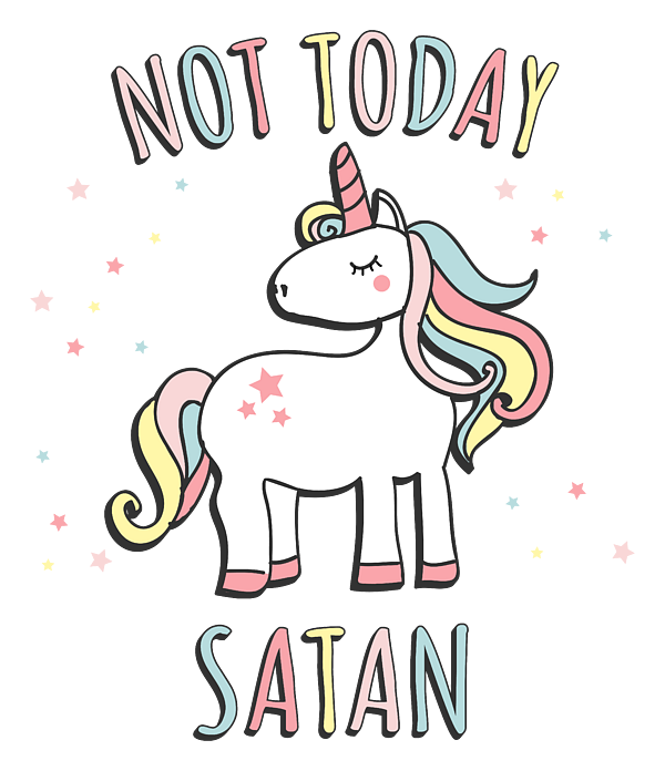 Looking for a unique and humorous gift that will make your loved one smile? Check out this awesome design featuring a cool and sassy unicorn with the words Not Today Satan. Perfect for anyone with a sense of humor who loves unicorns and wants to show off their personality. Get this funny and stylish design today!