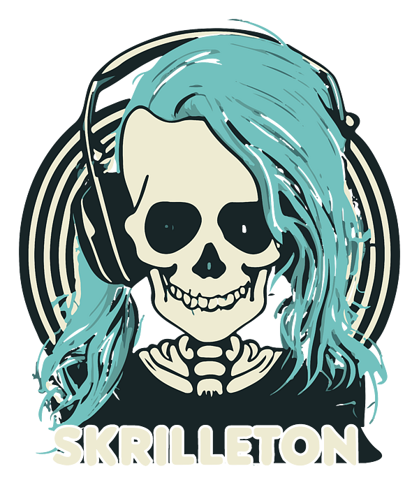 Fuse the rhythmic beats of electronic music with the skeletal aesthetics of Halloween to get the "Skrilleton" design. Ideal for those who groove to EDM beats while embracing their spooky side.