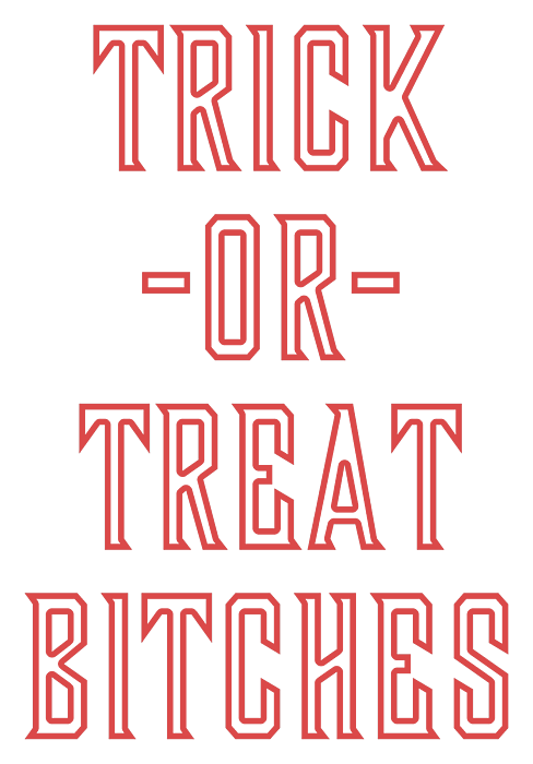 Looking for a humorous and edgy statement piece? Our Trick or Treat Bitches design is sure to turn heads and spark conversation. Perfect for those with a sarcastic and irreverent sense of humor, this design is a great gag-gift and is bound to make your friends laugh. Whether you're looking for a unique and mature addition to your wardrobe or a funny gift for a loved one, our Trick or Treat Bitches design fits the bill. So why settle for boring and bland when you can make a bold statement with our edgy and offensive design?